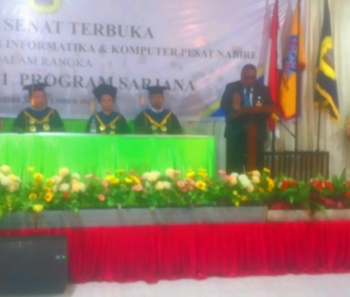 Acara sidang senat terbuka STMIK PESAT Nabire dalam rangka Wisuda I Program Sarjana dibuka oleh Ketua Yayasan STMIK PESAT Nabire, Gunawan Prayitno, M.Kom.