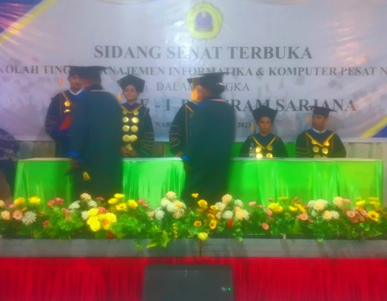 Nabire, Sebanyak 14 orang mahasiswa/i Sekolah Tinggi Manajemen Informatika dan Komputer (STMIK) PESAT Nabire, mengikuti acara Wisuda Strata Satu, Angkatan Pertama, Tahun Akademik 2023/2024, bertempat di Kampus STMIK PESAT Sanoba Nabire, Sabtu (11/11/2023).