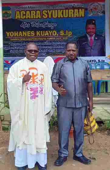 Syukuran ini diisi dengan bakar batu 11 ekor babi, Perayaan Ekaristi bersama Pastor Nikolaus Wakei Pr—sebuah janji lama yang akhirnya ditepati sejak masa remaja keduanya. Dalam sambutannya, Yohanes Kuayo mengucapkan terima kasih kepada warga yang telah memilihnya dan menyumbangkan dua unit Starlink untuk Desa Timeepa dan Gabaikunu guna mendukung akses komunikasi.